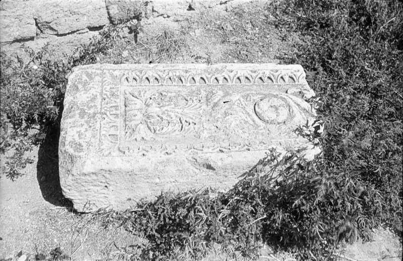 1986 р. Різьблений кам’яний блок у дворіРозмір зображення: 800:518 піксел 1986 р. 29 серпня. Фото М.І.Жарких. Негатека, № 309-36. |