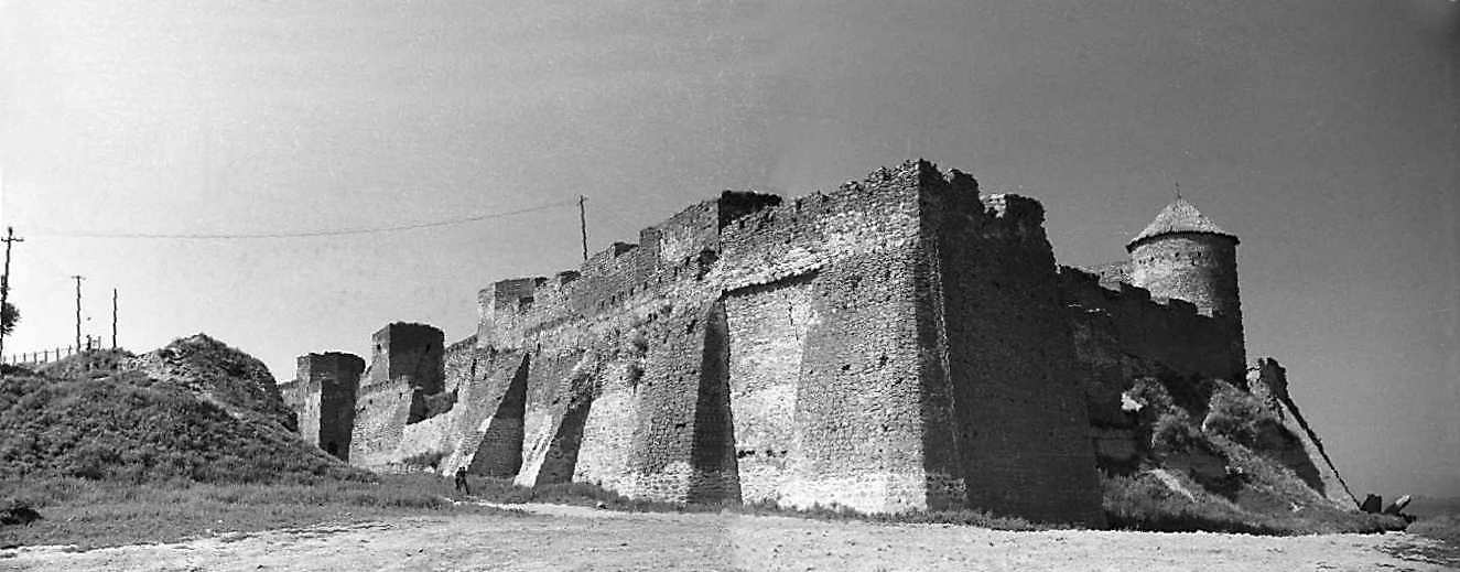 1987 р. Панорама північно-східного рогу фортеці з баштами 32 – 29 і цитаделлю. Вигляд зі сходуРозмір зображення: 1325:519 піксел 1987 р. 27 серпня. Фото М.І.Жарких. Негатека, № 360-15+6. |