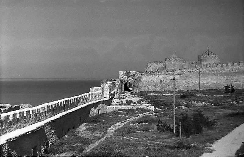 1987 р. Західна частина північного фронту, брама 21 і середній мур на тлі цитаделіРозмір зображення: 800:515 піксел Вигляд з південного заходу. 1987 р. 27 серпня. Фото М.І.Жарких. Негатека, № 365-29. |