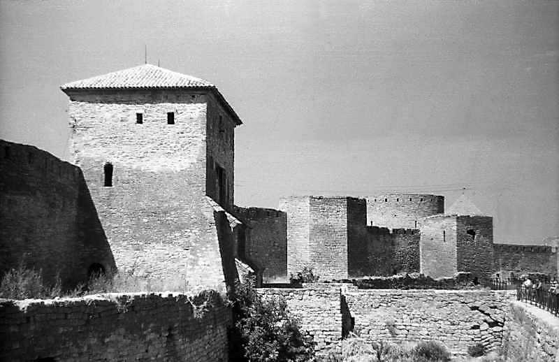 1995 р. Центральна частина східного фронту з баштами 1, 32, 27, 31Розмір зображення: 800:518 піксел Вигляд з південного сходу. 1995 р. 23 серпня. Фото М.І.Жарких. Негатека, № 881-28. |