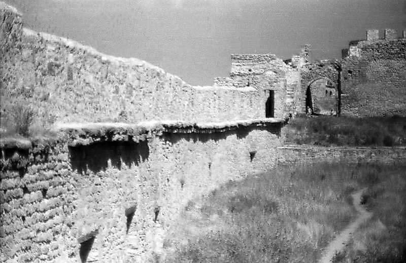 1995 р. Західна частина північного фронту з брамами 17, 21Розмір зображення: 800:519 піксел Вигляд з південного заходу. 1995 р. 23 серпня. Фото М.І.Жарких. Негатека, № 882-23. |