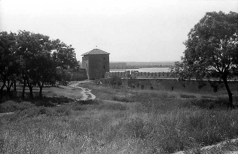 1995 р. Західна частина північного фронту з баштами 15, 16Розмір зображення: 800:516 піксел Вигляд зі сходу. 1995 р. 23 серпня. Фото М.І.Жарких. Негатека, № 884-19. |