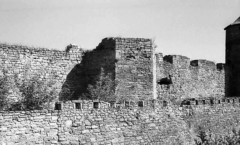Башта південного фронту (7)Розмір зображення: 800:485 піксел Загальний вигляд з південного заходу. 1984 р. 13 вересня. Фото М.І.Жарких. Негатека, № 276-16. |
