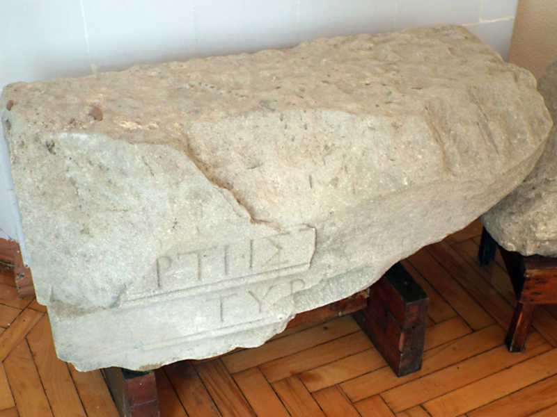 Кам’яний блок із фрагментом грецького написуРозмір зображення: 800:600 піксел Це два фрагменти однієї плити із пам’ятним будівельним напиос 2 ст. н. е. Фото Івана Парнікози, 22 червня 2021 р. |