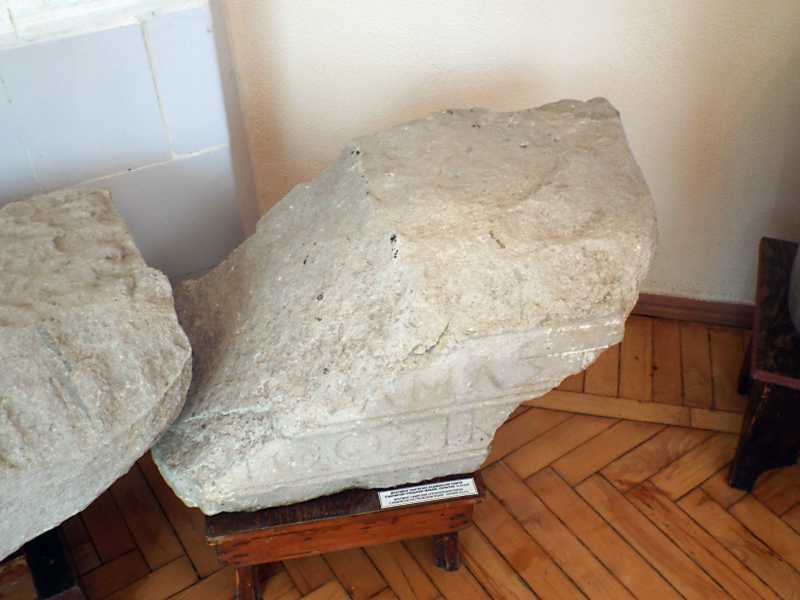 Кам’яний блок із фрагментом грецького написуРозмір зображення: 800:600 піксел Другий фрагмент будівельного напису. Фото Івана Парнікози, 22 червня 2021 р. |