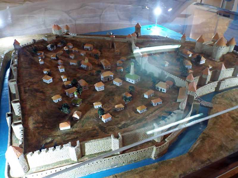 Макет фортеці. Вигляд зі «сходу» Розмір зображення: 800:600 піксел Фото Івана Парнікози, 22 червня 2021 р. Вкладені елементи Фрагмент макета фортеці із надбрамною баштою