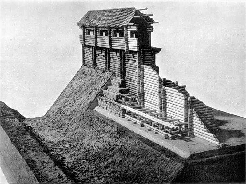 Макет укріплень Білгорода X – XII ст. (с. Білгородка під Києвом). Реконструкція М. В. Городцова та Б. О. Рибакова.
