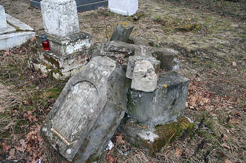 2016 р. Зруйнований надгробок Розмір зображення: 800:533 піксел Фото Зенона Боровця, 4 березня 2016 р. Попередня сторінка | Вище | Наступна сторінка