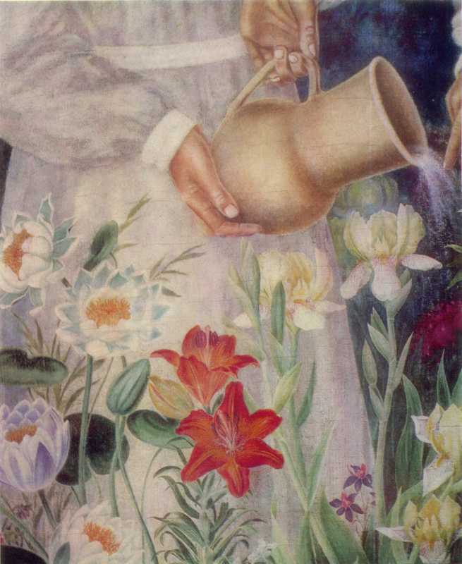ФрагментРозмір зображення: 655:800 піксел 4-5. Портрет племінниць художниці. 1937-1939. Полотно, олія. 106: 72 см. Власність X. Я. Білокур. Джерело: Катерина Білокур. – К.: Мистецтво, 1975 р. |