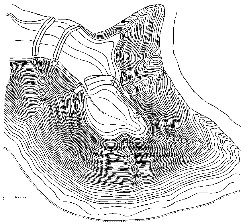 ГородищеРозмір зображення: 855:778 піксел План городища біля с. Зарічне (Боголюбове). Коротя А.В., Осадчий Е.Н. середины XVII в. – Русский сборник (Брянск), 2013 г., вып. 7, с. 170. |