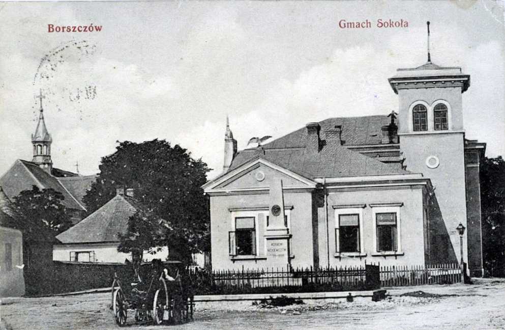 Будинок «Сокола»Розмір зображення: 993:648 піксел Поштівка: будинок польського спортивного товариства «Сокіл» у Борщові. – Borszczów, gmach Sokoła. W Borszczowie : nakł. A. Teifera hurtownik tytoniu, [1913] (pocztówka); 9,1 × 13,9 cm |