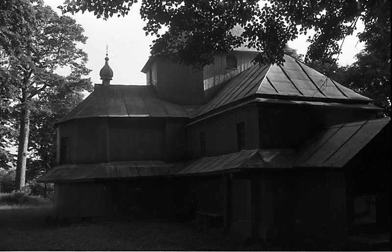 1989 р. Вівтар і нава. Вигляд з півночіРозмір зображення: 800:515 піксел 1989 р. 6 липня. Фото М.І.Жарких. Негатека, № 524-14. |