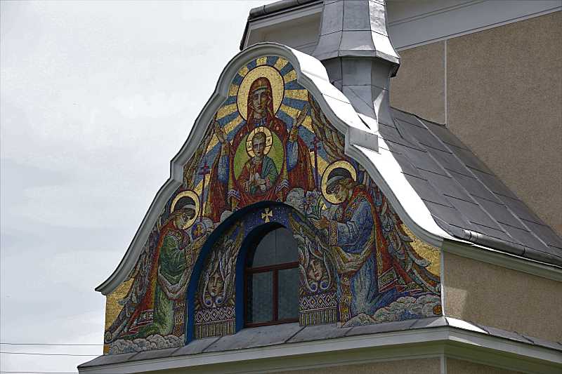 Мозаїка «Богородиця Знамення» над входомРозмір зображення: 800:533 піксел Фото Зенона Боровця і Богдана Тхора, 27 липня 2017 р. |