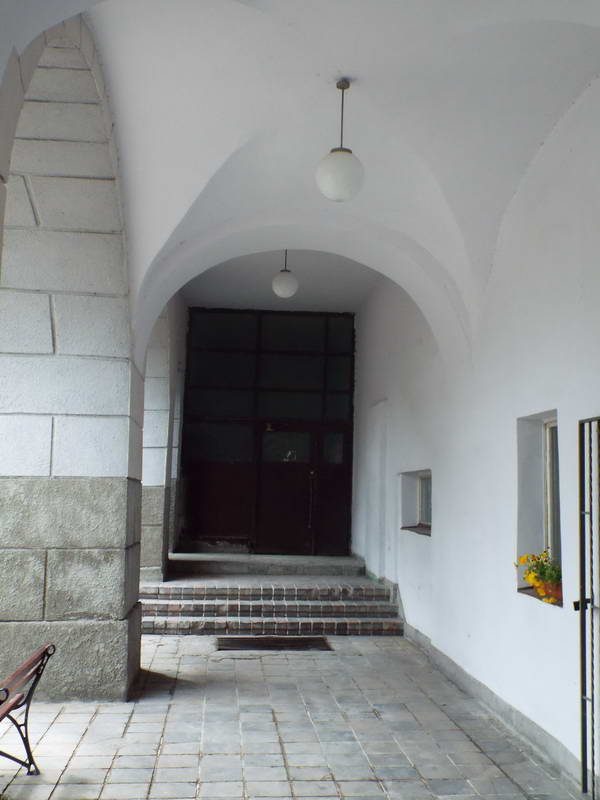 Collegium Hosianum – перша єзуїтська школа у Польщі, в якій навчалися майбутні уніатські митрополити і єпископи. Галерея з меморіальними дошками відомих випускників. Тут бракує дошок на честь українських уніатських діячів. Фото Івана Парнікози, 13 серпня 2013 р.