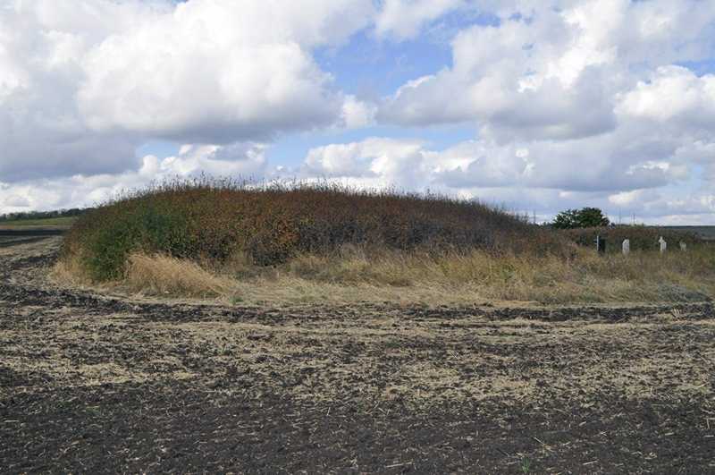 Курганний могильникРозмір зображення: 800:531 піксел Фото 21 вересня 2019 р. з сайту Могильник курганний (2 кургани) (h=1 м, d=40 м; h=1 м, d=20 м), Братське, 0,25 км на захід від західної околиці села; на кладовищі. |