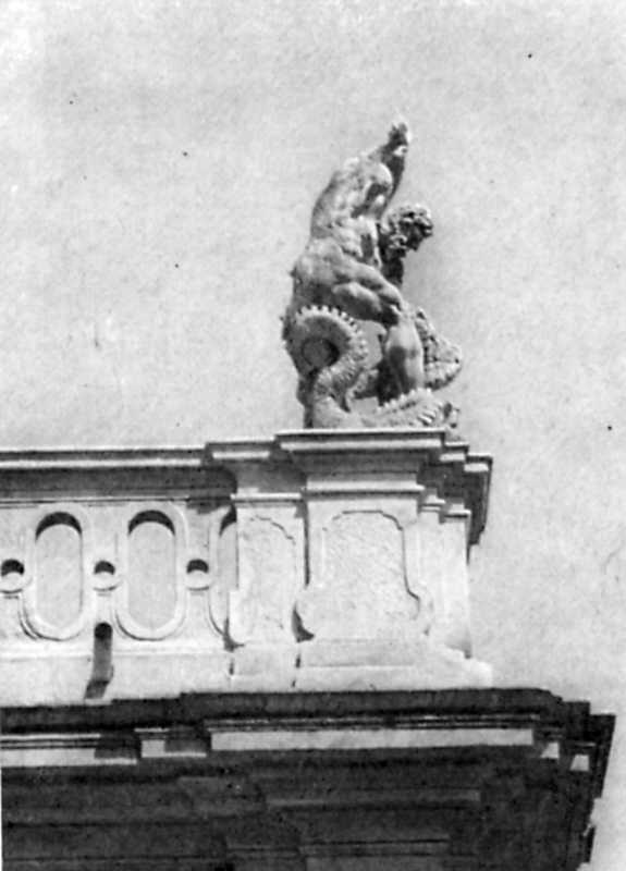 Геракл. Скульптура на ратуші в Бучачі. 1751 р.Розмір зображення: 575:800 піксел Джерело: Логвин Г.Н. По Україні. – К.: Мистецтво, 1968 р., с. 311. |