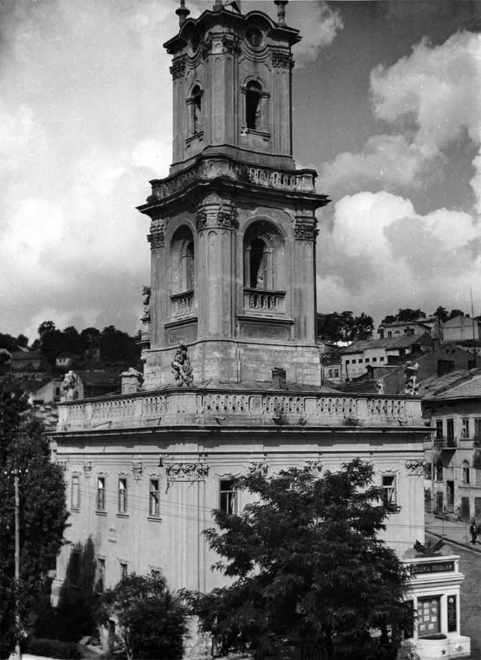 1950-і рр. Загальний вигляд з південного сходу Розмір зображення: 699:960 піксел Опубліковано 4.11.2018 р. Вкладені елементи Скульптури на фронтоні