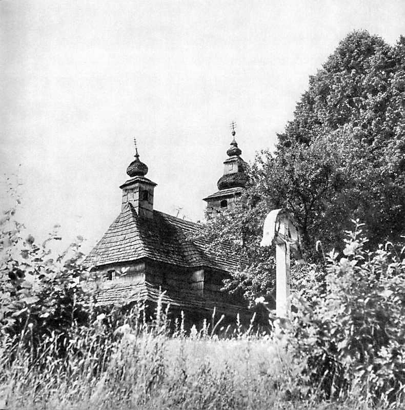 [1970 р.] Загальний вигляд з позиції А1Розмір зображення: 790:800 піксел Джерело: Гоберман Д. Н. Памятники деревянного зодчества Закарпатья. – Ленинград: Аврора, 1970 г. |
