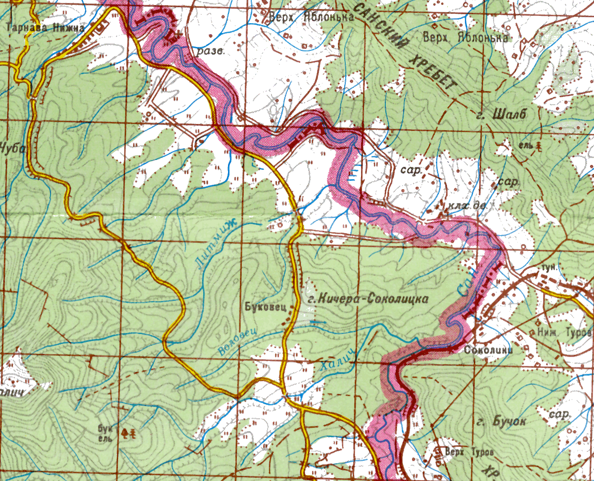 КартаРозмір зображення: 1201:974 піксел Карта Київської військово-картографічної фабрики, масштаб 1:100000, аркуш 125, друк 2001 р. (за матеріалами 2000 р.). |