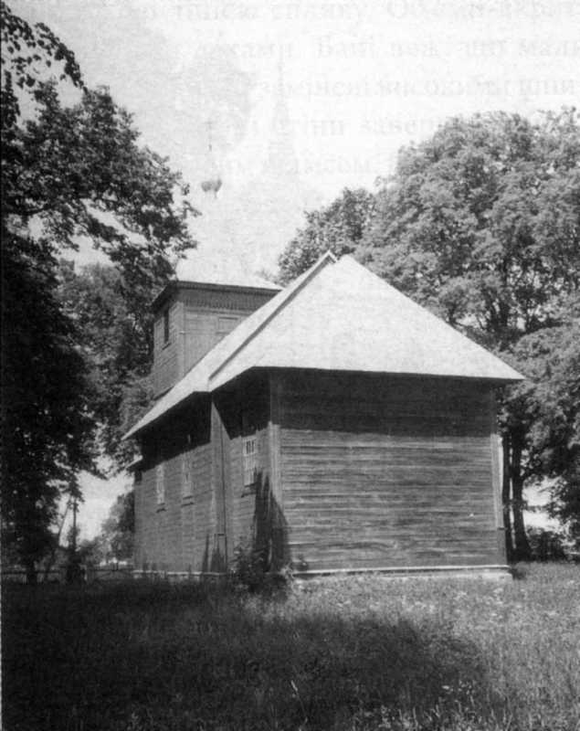 Згідно з переказами, перша церква збудована у 1576 р. 1, хоча дослідник о. Григорій Сосна датує першу згадку 1573 р. 2 згадується також в акті візитації 1595 р. В акті візитації 1751 р. говорилося про ікони, перенесені зі старої церкви, датовані 1710 і 1722 рр. 3 Отже ця церква повинна була бути збудованою між 1722 і 1751 рр. У 1885 р. її описав священик Л. Паєвський. 4 Це була невелика будівля, зведена із соснових брусів, скріплених дубовими тиблями, прямокутна в плані з пізнішою прибудовою до вівтаря. її наву вкривав повний дах з заломом. У 1854 р. 5 церкву приєднано до парафії в Носові, а у 1859 р. зачинено, як близьку до руїни і небезпечну. У 1896 р. на місці розібраної старої будівлі зведено нову дерев’яну церкву св. Духа на мурованому фундаменті. 6 Після першої світової війни перетворена на костел.
