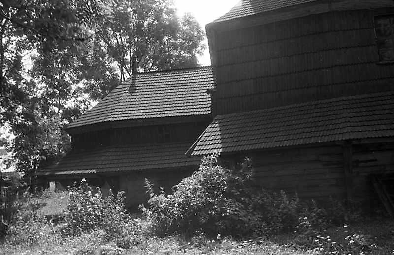 1988 р. Вівтар і нава. Вигляд з півночіРозмір зображення: 800:519 піксел 1988 р. 14 серпня. Фото М.І.Жарких. Негатека, № 446-16. |