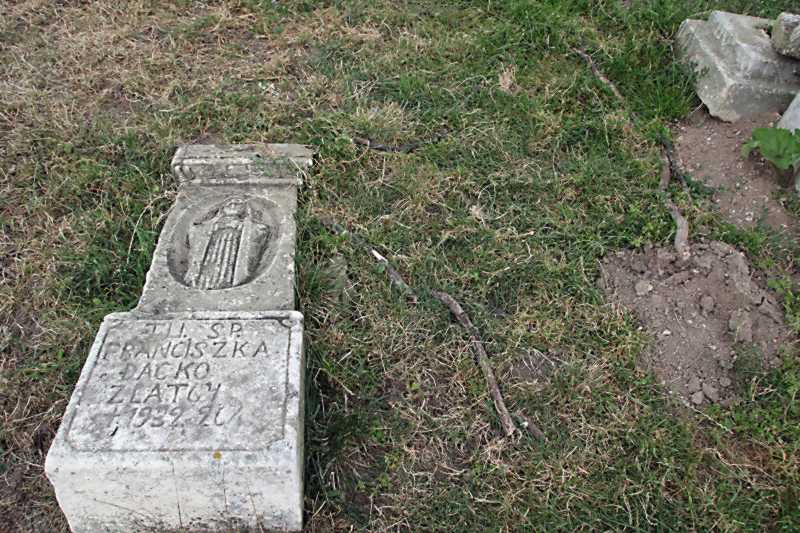 Надгробок Ф. ДацкоРозмір зображення: 800:533 піксел Фото Зенона Боровця і Богдана Тхора, 25 липня 2016 р. Напис (польською мовою): «Тут лежить Францішка Дацко, жила літ 64 1932». |