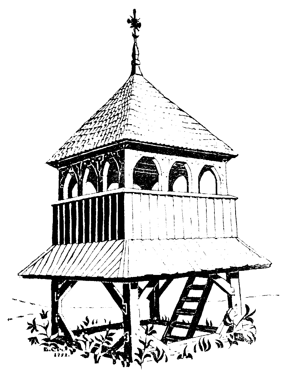 Джерело: Січинський В. Деревяні дзвіниці і церкви Галицької України XVI – XIX ст. – Льв.: 1925 р., № 12.