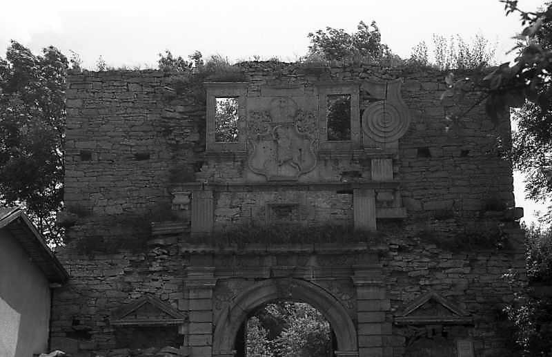 1992 р. Верхня частина надбрамної башти. Вигляд із заходуРозмір зображення: 800:517 піксел 1992 р. 24 червня. Фото М.І.Жарких. Негатека, № 777-24. |
