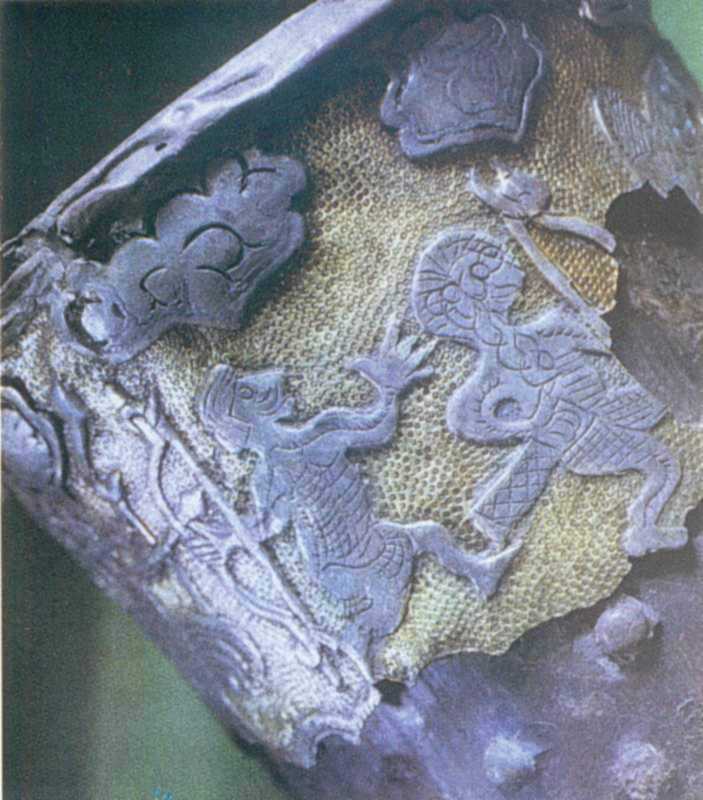 Фрагмент оправи ритонаРозмір зображення: 703:800 піксел Оковка ритона з кургану Чорна Могила (середина X ст.). Джерело: Історія української культури. – К.: 2001 р., т. 1, с. 935. |