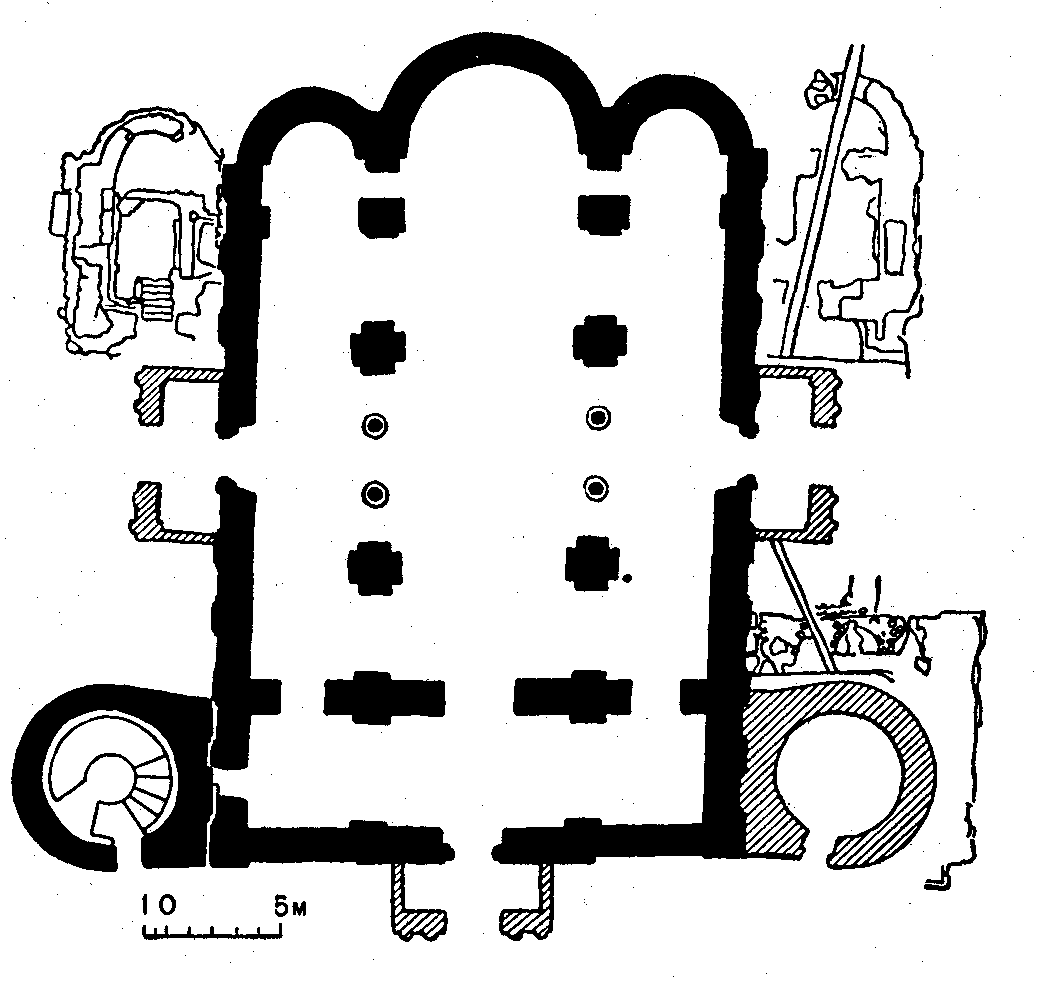 ПланРозмір зображення: 1042:983 піксел План Спаського собору в Чернігові. 1036 р. За І. В. Моргилевським. Джерело: Історія українського мистецтва. – К.: Наукова думка, 1966 р., т. 1, с. 166. |