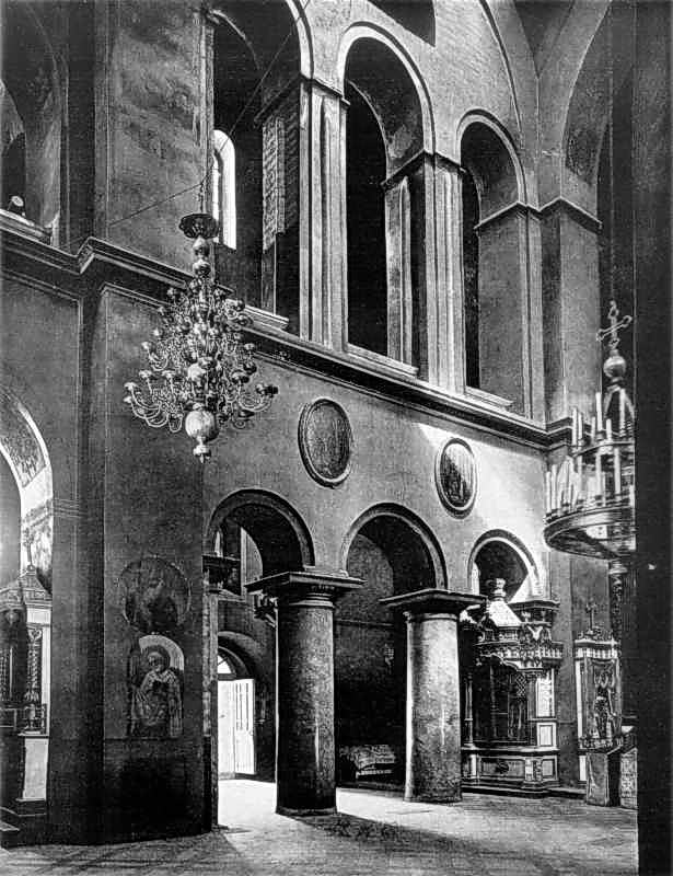 Інтер’єр центральної навиРозмір зображення: 615:800 піксел Інтер’єр Спаського собору в Чернігові. 1036 р. Джерело: Історія українського мистецтва. – К.: Наукова думка, 1966 р., т. 1, с. 167. |