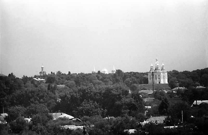 1989 р. Панорама дитинця з Болдиних гірРозмір зображення: 800:520 піксел 1989 р. 21 травня. Фото М.І.Жарких. Негатека, № 490-33. |