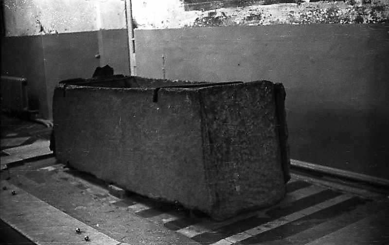 1976 р. Шиферний саркофагРозмір зображення: 800:504 піксел 1976 р. 4 квітня. Фото М.І.Жарких. Негатека, № A100-15. |