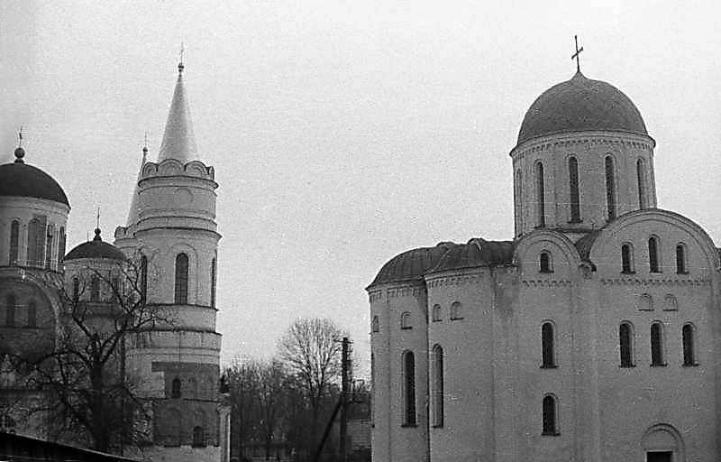 Взаємне розташування Спаського і Борисоглібського соборівРозмір зображення: 800:512 піксел 1976 р. 4 квітня. Фото М.І.Жарких. Негатека, № A100-35. |
