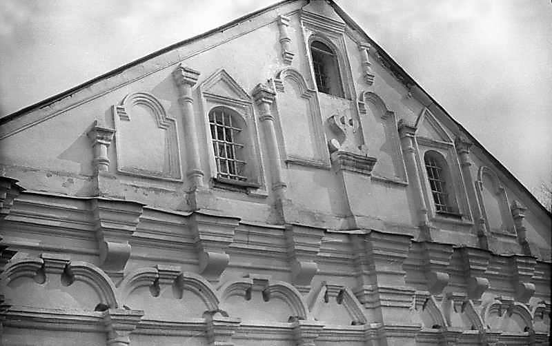 Фронтон західного фасадуРозмір зображення: 800:502 піксел 1976 р. 4 квітня. Фото М.І.Жарких. Негатека, № A101-02. |