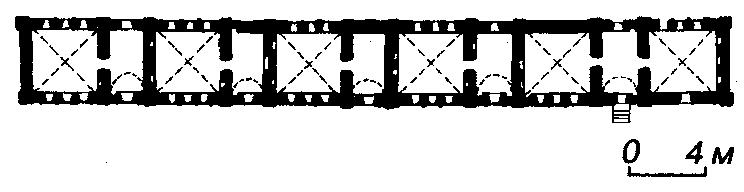 Східні келії замикають зі сходу монастирський двір. Споруда завдовжки 38 м – лінійно-камерного тип), секційного розпланування. Кожна секція – тридільна і складається з двох келій з сінями між ними.