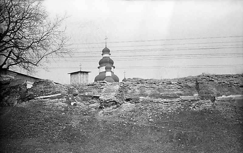1976 р. Ділянка мурів з південного заходуРозмір зображення: 800:505 піксел 1976 р. 4 квітня. Фото М.І.Жарких. Негатека, № A102-16. |