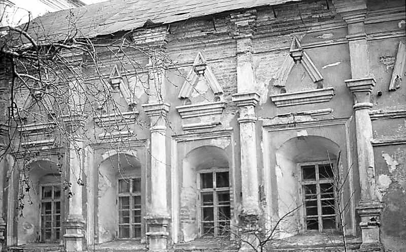 1976 р. Фрагмент північного фасадуРозмір зображення: 800:496 піксел 1976 р. 4 квітня. Фото М.І.Жарких. Негатека, № A102-35. |