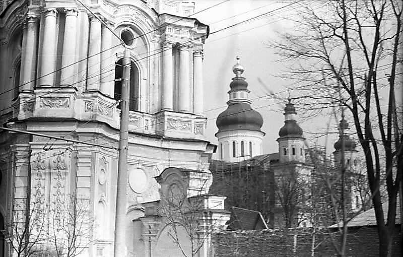 1976 р. Дзвіниця і собор св.трійці. Вигляд з північного заходуРозмір зображення: 800:510 піксел 1976 р. 4 квітня. Фото М.І.Жарких. Негатека, № A103-06. |