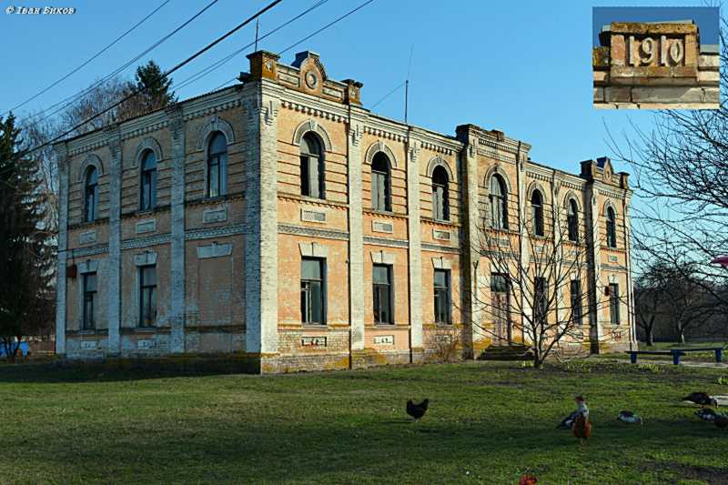 Земська школаРозмір зображення: 800:533 піксел Фото Івана Бикова з сайту , опубліковане 4 травня 2024 р. Збудована в 1910 р., нині стоїть пусткою. |