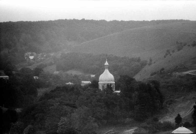1990 р. Церква в панорамі села. Вигляд з півдня
