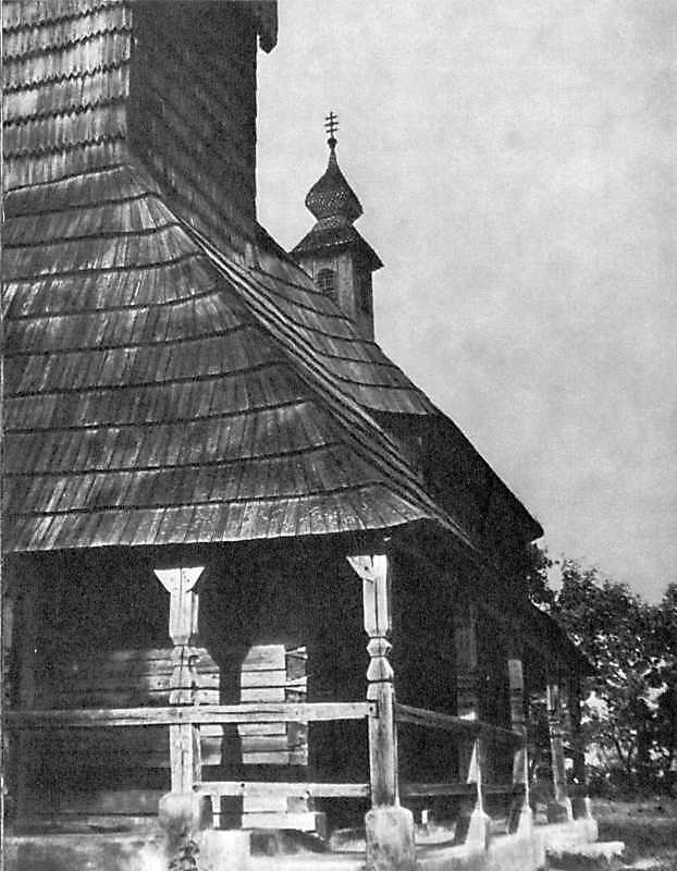 [1970 р.] Вигляд з позиції С3Розмір зображення: 622:800 піксел Джерело: Гоберман Д. Н. Памятники деревянного зодчества Закарпатья. – Ленинград: Аврора, 1970 г. |