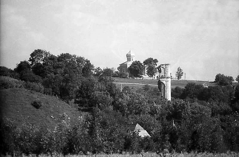 1996 р. Костел і церква. Вигляд з півночіРозмір зображення: 800:524 піксел Костел (справа ближче до нас) і церква (зліва, далі). 1996 р. 12 серпня. Фото М.І.Жарких. Негатека, № 904-39. |