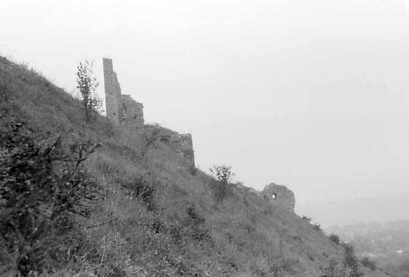 1989 р. Мури 5 – 2 і башта 1. Вигляд з півночіРозмір зображення: 800:542 піксел 1989 р. 19 серпня. Фото М.І.Жарких. Негатека, № 590-22. |