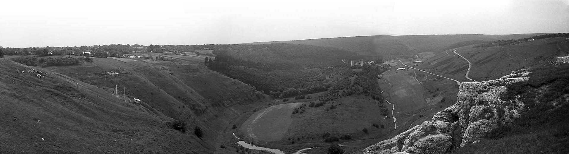 1988 р. Панорама долини зі сходуРозмір зображення: 1916:521 піксел 1988 р. 22 червня. Фото М.І.Жарких. Негатека, № 422-25+7. |