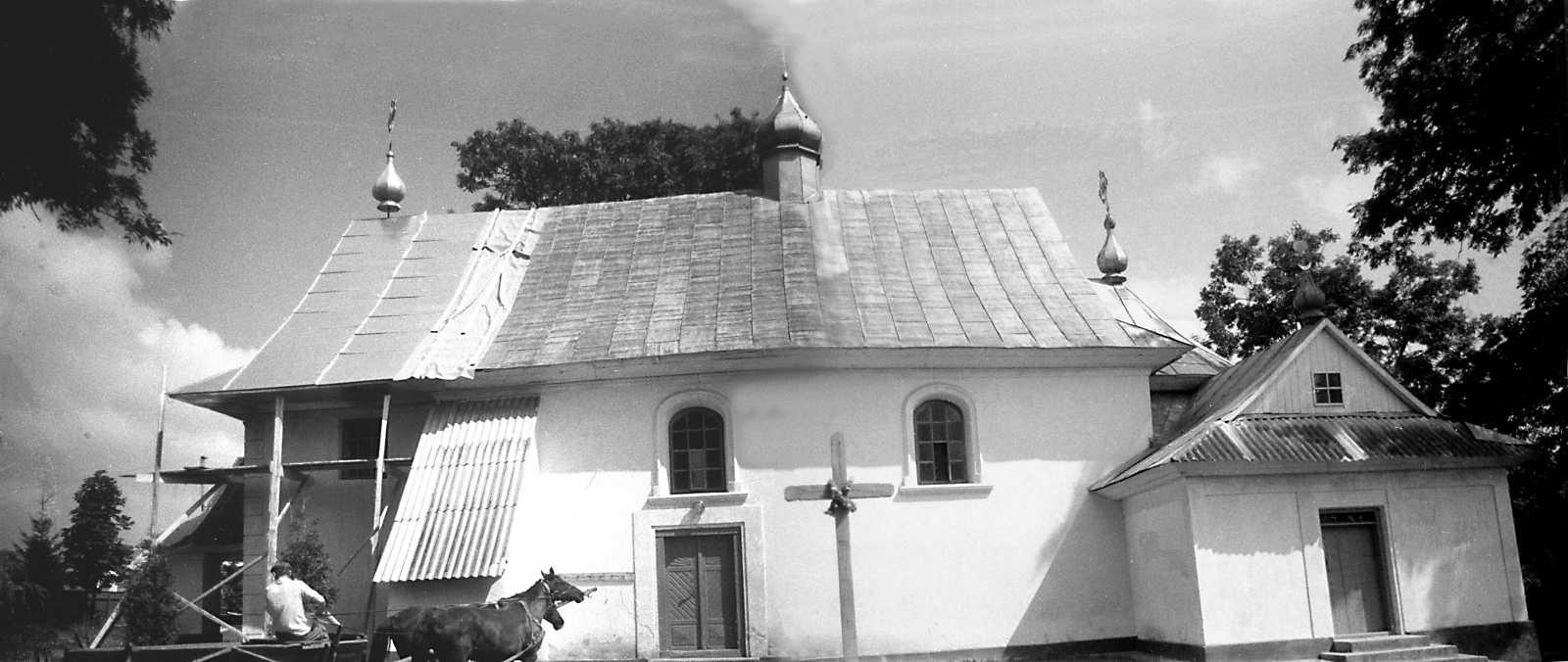 1991 р. Загальний вигляд з півдняРозмір зображення: 1600:676 піксел 1991 р. 16 серпня. Фото М.І.Жарких. Негатека, № 715-25+6. |