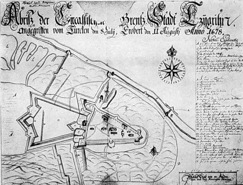 1678 р. План фортеціРозмір зображення: 800:609 піксел План Чигирина. 1678 р. Джерело: Історія українського мистецтва. – К.: Наукова думка, 1967 р., т. 2, с. 62. |