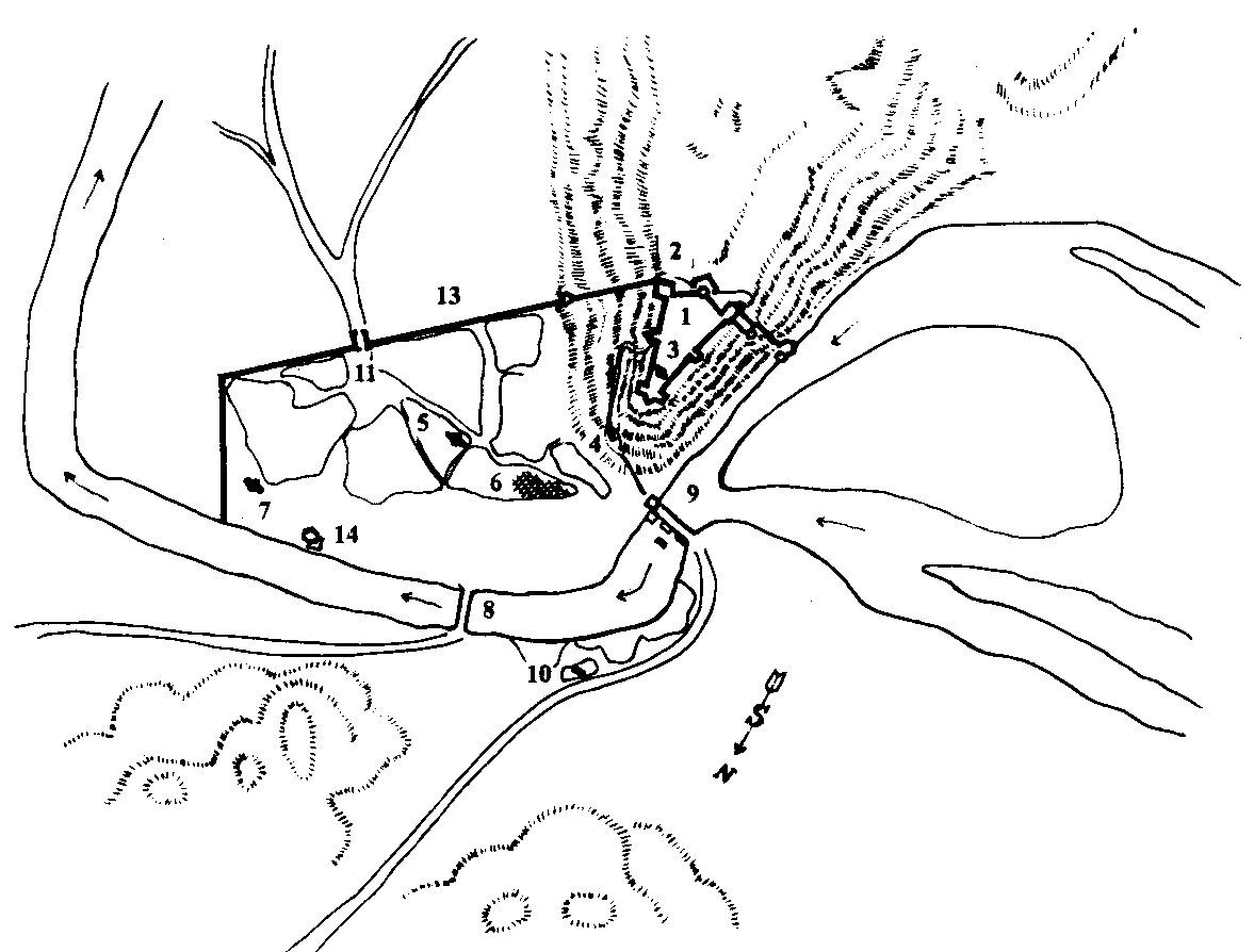 План забудови й укріплень Чигирина на 1677 р. Реконструкція Т.БажановоїРозмір зображення: 1177:894 піксел Джерело: Пам’ятки України, 2002 р., № 2, с. 34. |