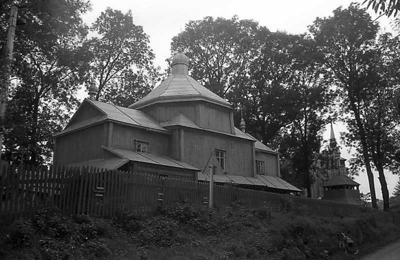 1993 р. Церква і дзвіниця. Вигляд з північного сходуРозмір зображення: 800:521 піксел 1993 р. 16 липня. Фото М.І.Жарких. Негатека, № 807-31. |