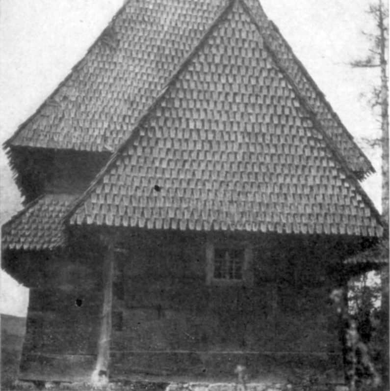 [1970 р.] Дах, покритий дощатим ґонтомРозмір зображення: 795:796 піксел Дах, покритий дощатим ґонтом, церква у с. Данилове Закарпатської обл., XVIII ст. Джерело: Юрченко П.Г. Дерев’яна архітектура України. – К.: 1970 р., с. 22. |